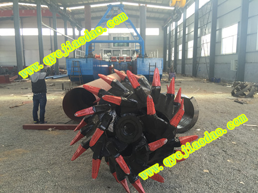 该挖泥船铰刀头是我们配置自己公司生产的挖泥船上使用的,直径达到1500mm,液压马达扭矩32000N.M。使用的是可更换刀齿,后期维护更加方便。该铰刀配用14寸泥浆泵使用,泵进口16寸,出口14寸,使用潍柴8170柴油机带动。整船达到排沙距离800米以上,因此我们使用挖泥船铰刀头是用大不换小。该铰刀所配扭矩可以在铁板沙工作环境高效率工作,由一台176KW柴油机带动液压泵站,因此扭矩可以放心!直径1.5米挖泥船铰刀头我们公司也有现货一台,有需要的可以直接电话订购,也欢迎来我们公司考察现货挖泥船!